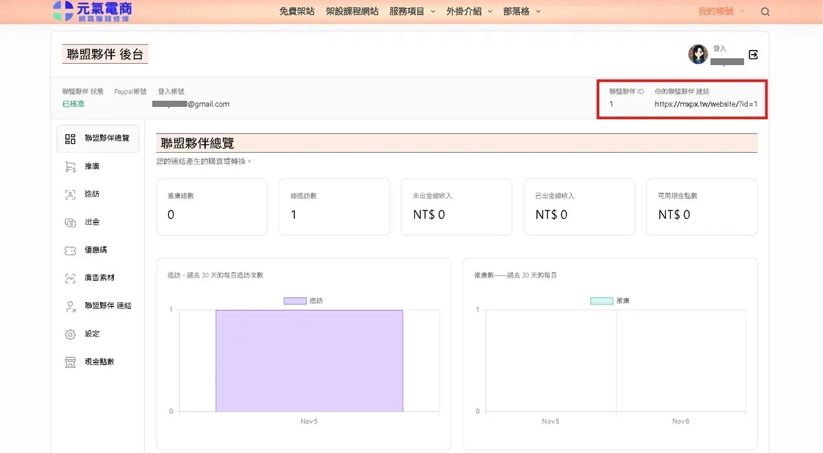 例如:我的ID為 “1”,我的專屬推廣連結=https://mxpx.tw/?id=1
